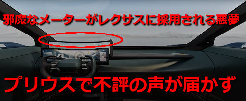 操縦桿(そうじゅうかん)風のハンドルになると、なぜ上から見下ろすメーターを採用したがるのでしょうか。BZ4Xやプリウスのメーターパネル(トップマウントメーター)は視界の邪魔でしかなく、不自然な運転姿勢を強いるものです。ネット上でも不評の声は、販売現場でも同様でしょう。