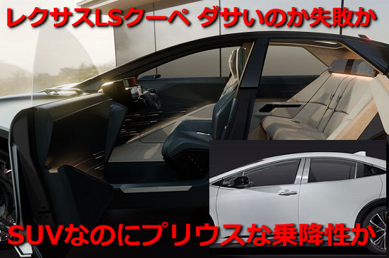 LSは本来セダンのベンチマークであるべきであって、SUV化は時代のデザインを最優先し、居住性を犠牲にするデザインは本末転倒です。
