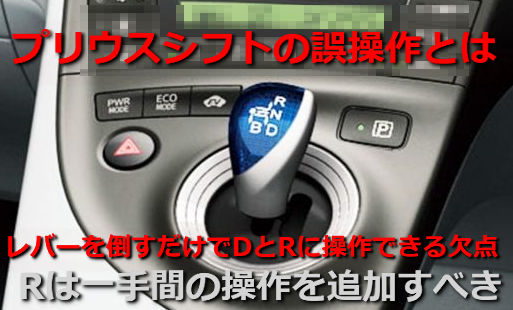 プリウスシフト上に、RとDの位置表示が無いため、確認を怠る可能性が高い。